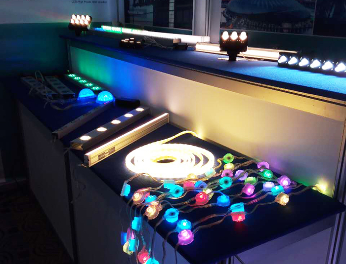 作為專業(yè)的戶外照明品牌,勇電照明一直保持著提升產(chǎn)品的創(chuàng)新能力。此次在會議現(xiàn)場,勇電不僅展出了點光源、線條燈、洗墻燈、大功率投光燈等系列LED照明燈具,還將旗下新品牌——法拉沃戶外裝飾照明產(chǎn)品悉數(shù)帶到現(xiàn)場,造型獨特、五彩斑斕的小彩燈一經(jīng)亮相,便吸引了參會人員前來觀看,并獲得了照明科研人員的大力稱贊。