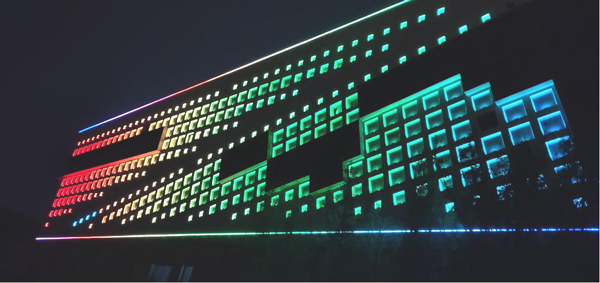 結(jié)合建筑特色和整體氛圍,“三館”外圍立面窗臺采用LED窗臺燈進行點亮。同時,在項目燈具上進行了外殼噴塑處理,提升了燈具隱蔽性,在白天不影響建筑整體美感的情況下讓亮化達到 “見光不見燈”的效果。