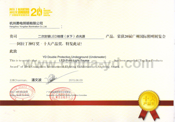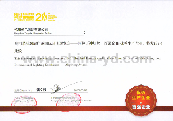 2015年阿拉丁神燈獎于6月9日20:00隆重舉行,在本屆阿拉丁神燈獎評選中,勇電照明憑借雄厚的研發(fā)創(chuàng)新實力榮獲“十大產(chǎn)品獎”及“百強企業(yè)”獎。